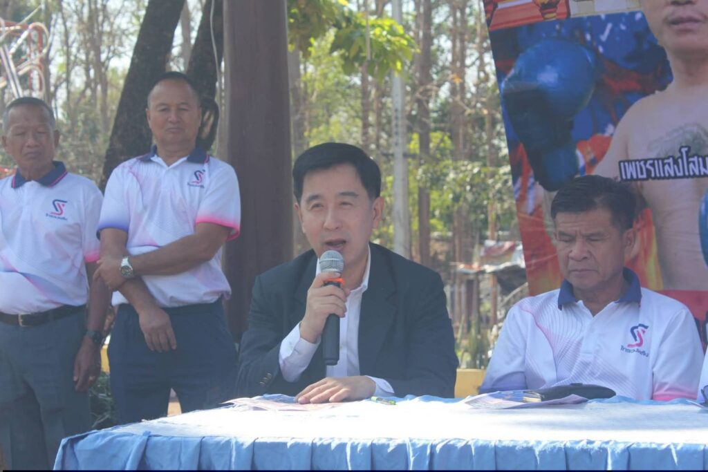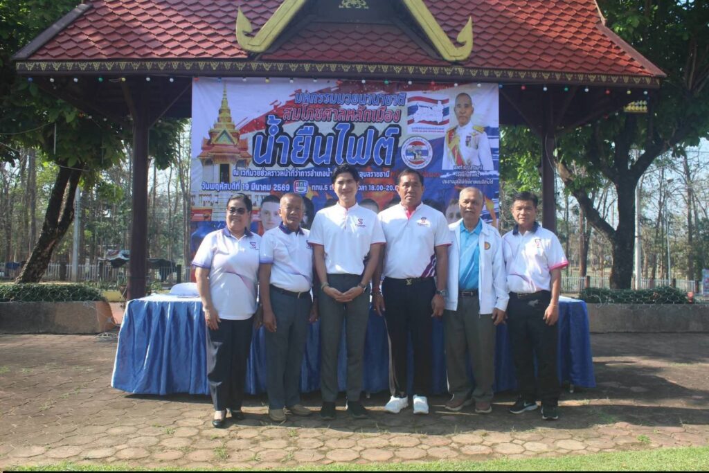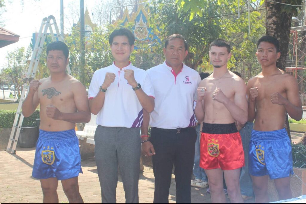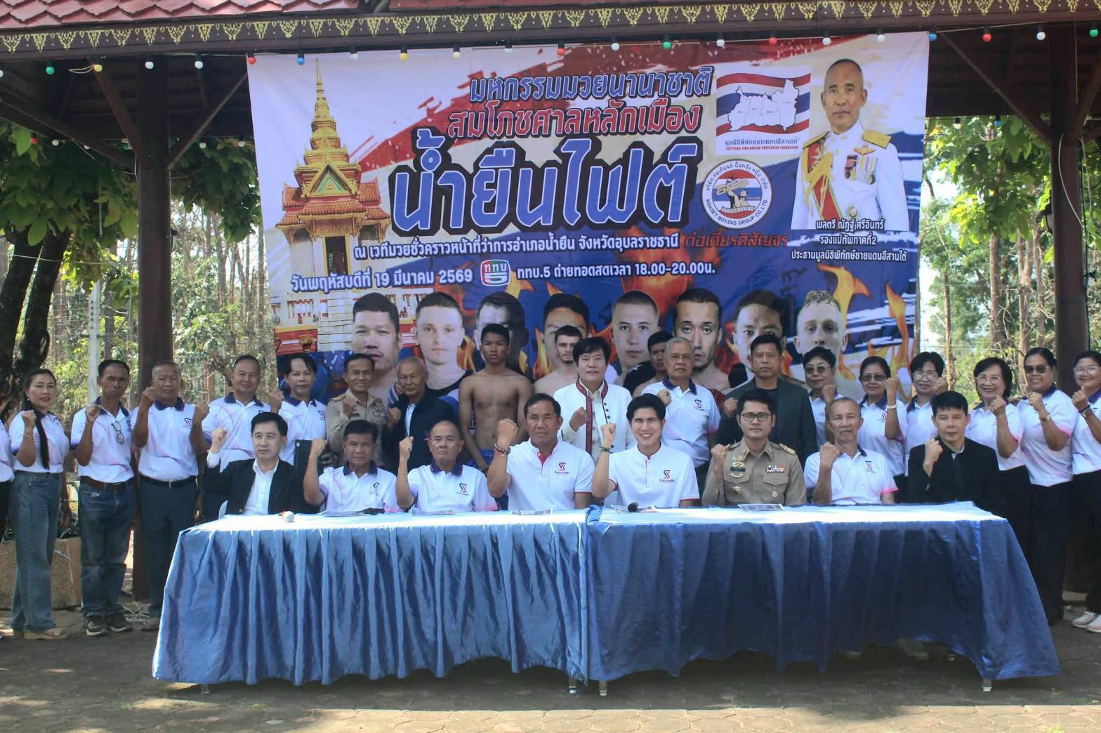 ส.ส.กังฟู-วสวรรธน์ พวงพรศรี หัวหน้าพรรคไทรวมพลัง,นายสมศักดิ์ บุญประชุม ส.ส.เขต10 จ.อุบลราชธานี พรรคไทรวมพลัง,นายสมชัย ริทัศน์โส ปลัดอาวุโส ผู้แทนนายอาทิตย์ บุษบา นายอำเภอน้ำยืน,”เสี่ยโก้” นายก่อเกียรติ พาณิชยารมณ์ และนายสรวีร์ ฤทธิชัย ร่วมแถลงข่าวมหกกรรมมวยไทยนานาชาติ “งานประเพณีบวงสรวงสักการะศาลเจ้าพ่อหลักเมือง สืบสานวัฒนธรรม 4 ชนเผ่าชาวอำเภอน้ำยืน ประจำปี 2569 “น้ำยืนไฟต์” 19 มี.ค.2569 ที่เวทีมวยชั่วคราวลานหน้าเทศบาลอำเภอน้ำยืน จ.อุบลราชธานี