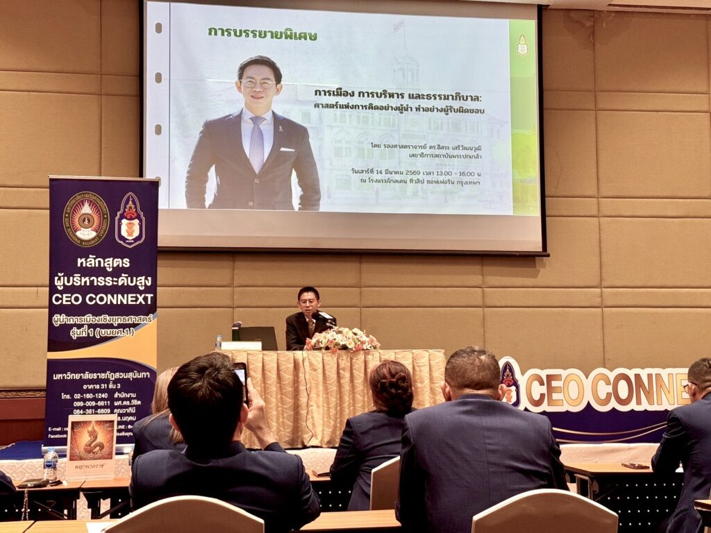 กรุงเทพฯ (14 มีนาคม 2569) – เลขาธิการสถาบันพระปกเกล้า เปิดวิสัยทัศน์กลางเวที CEO CONNEXT รุ่น 1 ชี้ทางรอดประเทศไทยต้องก้าวข้าม “ประชานิยม” สู่ “รัฐสวัสดิการที่ยั่งยืน” ย้ำปฏิรูปการเมืองจะสำเร็จได้ต้องเริ่มที่การปฏิบัติจริง ไม่ใช่แค่ตัวอักษร พร้อมแนะจับตาการเมืองยุคใหม่ไร้ขั้ว “ซ้าย-ขวา” แต่สู้กันด้วยประเด็นเฉพาะทาง