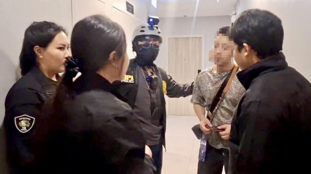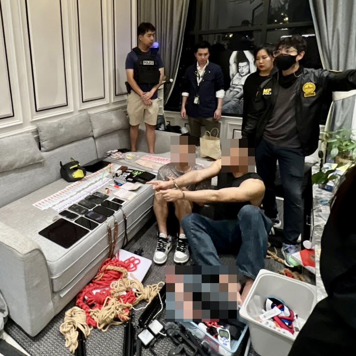 ทั้งนี้ เจ้าหน้าที่เฝ้าติดตามก่อนเข้าจับกุมช่วงกลางดึก พบ Mr.Cai กำลังก่อเหตุลักษณะตามที่ร้องเรียน ส่วน Mr.Li นอนเปลือยพร้อมอุปกรณ์เสพยา ตรวจค้นพบยาและอุปกรณ์จำนวนมาก